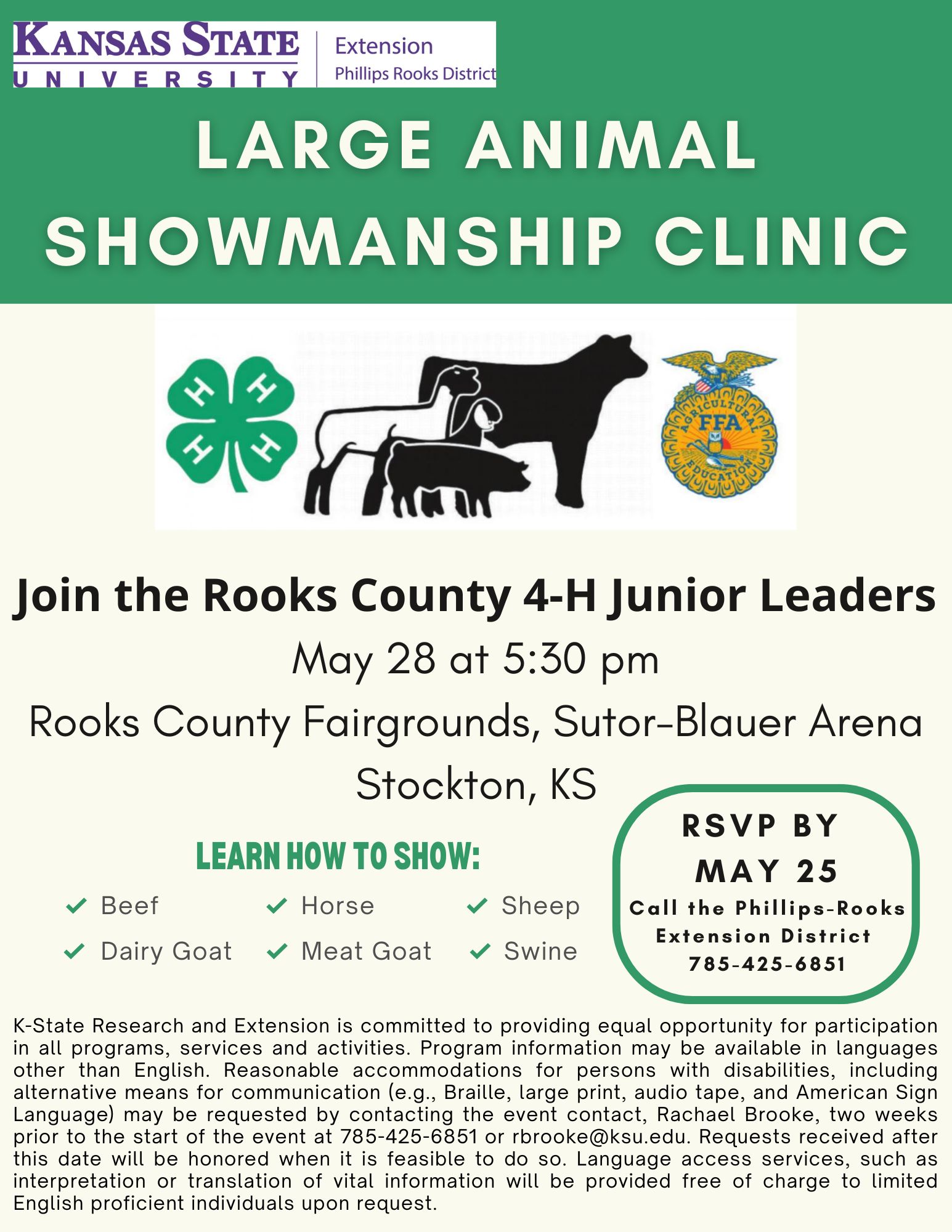 Find more information on: Rooks County 4-H Forms & Applications, Phillips-Rooks District 4-H Newsletter, and Rooks County Free Fair (August 4-9, 2025) .